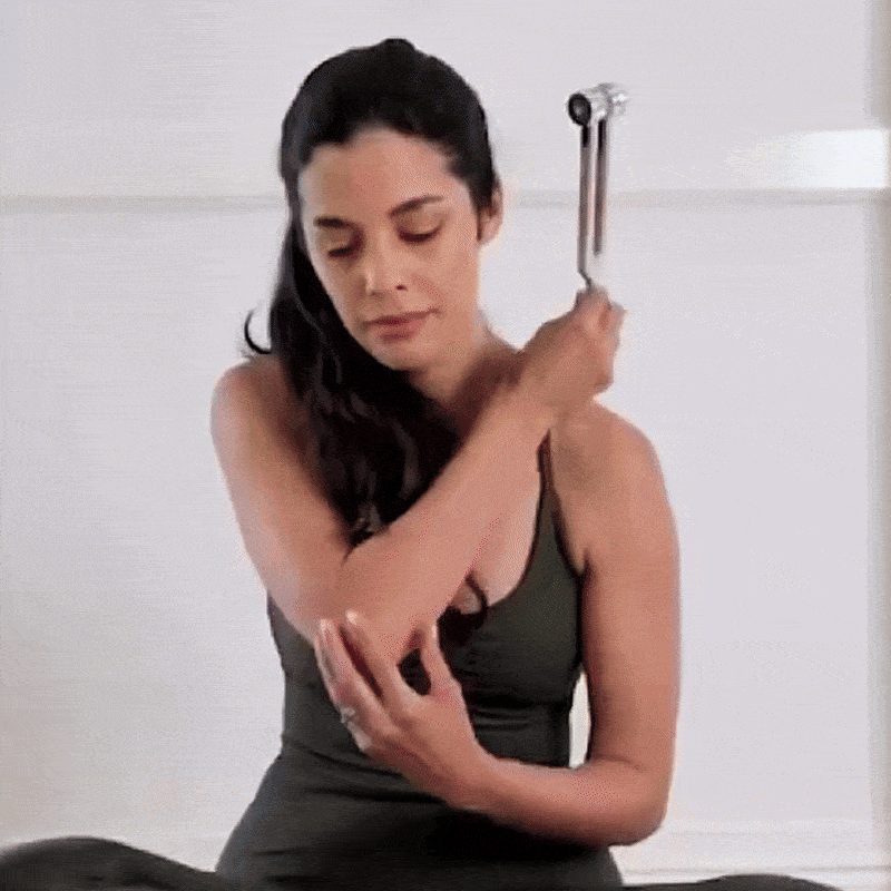 מקמו את הקולן (כלי ריפוי בתדר 128Hz) על האזור שדורש טיפול. הוא מיועד לפעול על מפרקים, שרירים ועצבים ולהעניק הקלה מיידית.